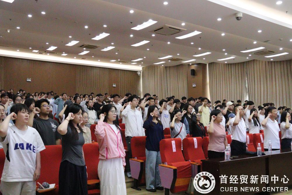 宣讲结束后,同学们在领誓员的带领下进行了庄严的宣誓,高声喊出了当代青年学史爱党、学史报国的理想与抱负,表现出了新时代大学生的使命与担当。