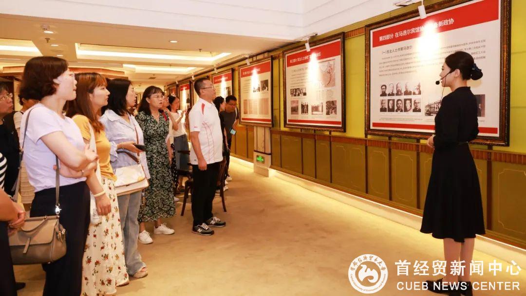7月2日,首经贸马院党委与黑龙江大学马院党委在黑龙江大学博物馆开展联学联建活动。师生代表共同参观了“为了新中国——东北解放专题展”,沉浸式回顾东北解放战争的峥嵘岁月。师生们认真聆听讲解,交流感悟,接受爱国主义、革命传统和党性教育洗礼,对东北解放战争的光辉历程和伟大胜利有了更加直观、深刻地认识。